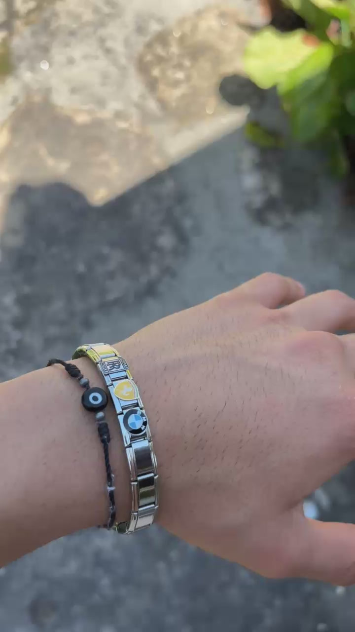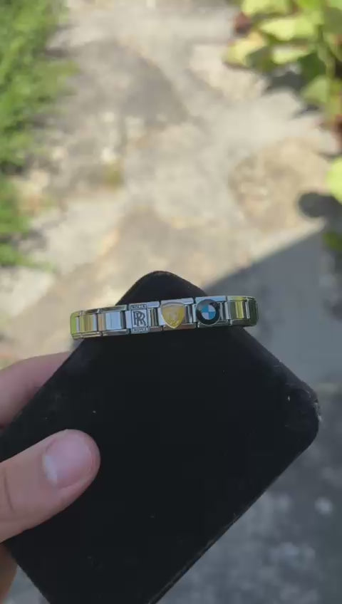Eleva tu estilo con nuestra exclusiva pulsera Italian Charms fabricada en acero inoxidable de alta calidad , resistente al agua, al desgaste y al paso del tiempo. Cada eslabón está cuidadosamente diseñado con emblemas auténticos de las marcas de autos más prestigiosas del mundo: ,FERRARI, ROLLS-ROIYCE, BMW + herramienta gratis.